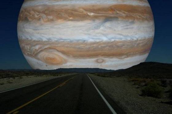 Uzay üzerine birbirinden güzel çalışmalara imza atan ödüllü grafik tasarımcı Ron Miller, gezegenlerin büyüklüklerini de hesaba katarak bu görüntüyü yansıtmaya çalışmış...