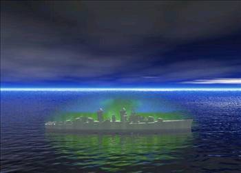 Jeneratörler çalışmaya başladıktan hemen sonra gemi hemen hemen görünmezlik çizgisine ulaşmıştı, sadece burnu ve arkası görülüyor, arada ise bazı çizgiler belli belirsiz seçiliyordu.
