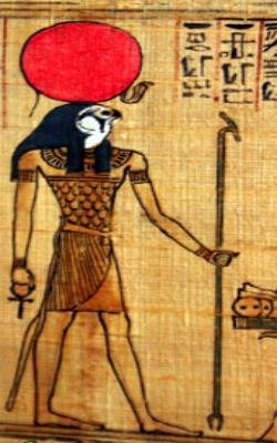 Güneş Tanrısı Ra; en köklü tanrılardan biri olup, Dünya'yı, diğer tanrıları ve insanları yaratmıştır. Kafasında bir disk taşıyan şahin başlı bir insan olarak tasvir edilir.