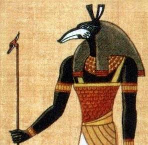 Karga başlı olarak tasvir edilen Thot, bilginin ve yazının tanrısı olup, bilgeliği sembolize eder.