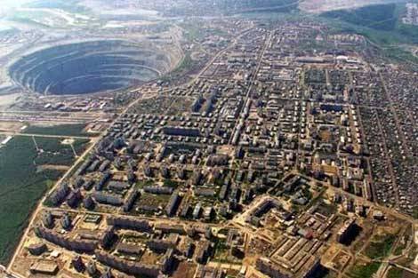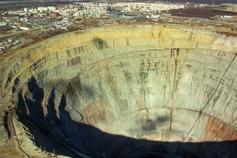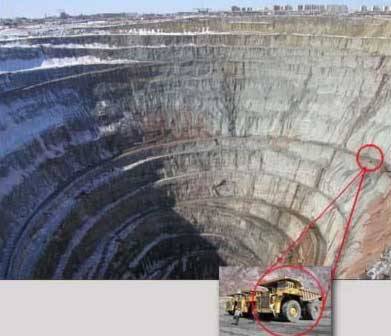 Mirny tam 525 metre derinliğinde ve 1.25 km çapında.