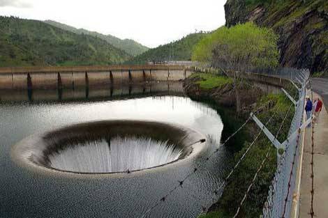 Barajların taşmalarını önlemek için kullanılan delikler de etkileyici büyüklükte olabiliyor. Kuzey Kaliforniya'da yer alan Monticello Barajı'ndaki delik de bunlara bir örnek.