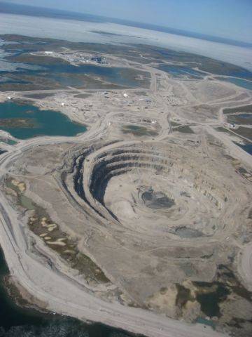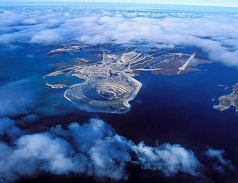 Yellowknife'ın 300 kilometre kuzeydoğusunda yer alan Diavik Madeni, o denli büyük ve çevreden o denli yalıtılmış durumda ki, bir Boeing 737'nin bile iniş yapabileceği büyüklükte uçak pistine sahip