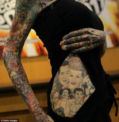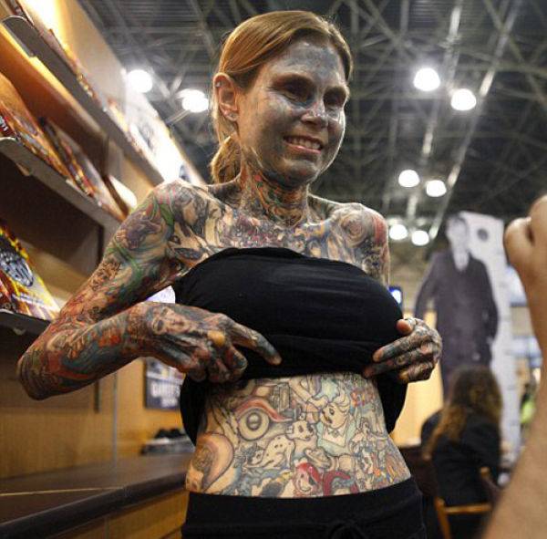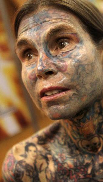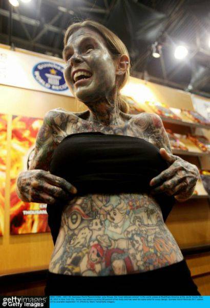 Amerikalı Julia Gnuse, bütün vücuduna neredeyse hiçbir boşluk kalmayacak şekilde dövme yaptırmış.