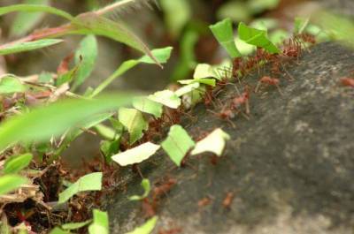 * Tropik bölgelerde yaşayan yaprak kesici karıncalar, keskin çeneleri ile yaprakları keser ve bunları yuvalarına taşır. Fakat bu yaprakları yiyecek olarak değil, mantar üretmek için kullanırlar. Mantarlardan kendileri için gerekli olan proteini elde ederler. Yaprakların eve taşınmasından, mantar bahçelerinin ekilip yiyecek elde edilmesine kadar geçen süreçte içerde ve dışarda pek çok işçi karınca çalışır.