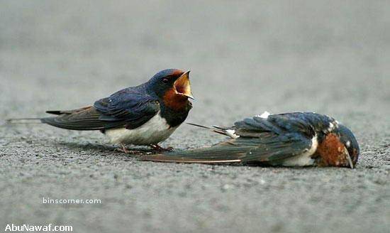 Tekrar yiyecek getirmek için döndüğünde, eşinin cansız bedeniyle karşılaşıyor. Canlanır ümidiyle onu hareket ettirmeye çalışıyor (ki bu kırlangıçlarda nadir görülen bir davranıştır).