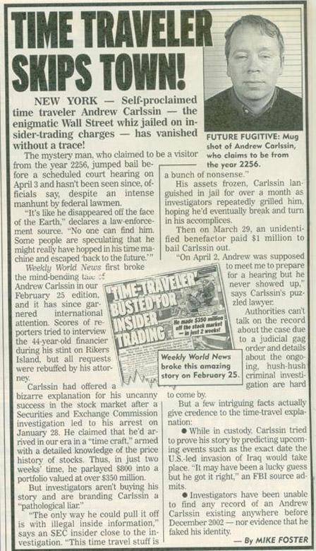 Yetkililer, bu adamın iddialarının palavra olduğu konusunda hemfikir; ancak bir SEC yetkilisi şunu itiraf ediyor: "Elimizdeki tüm federal kayıtları taradık, Andrew Carlssin isimli biriyle ilgili olarak, böyle bir adamın yaşadığını, bir şeyler yaptığını gösteren Aralık 2002 tarihinden önce hiçbir kayıt yok."