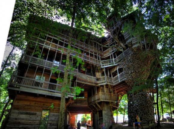 Toplam 6 ağacın üstüne kurulan ve içerden sayıldığında 10 kata sahip ev, hem dünyanın en ilginç evi, hem de ağaç üstüne kurulu en büyük yaşam alanı olsa gerek.