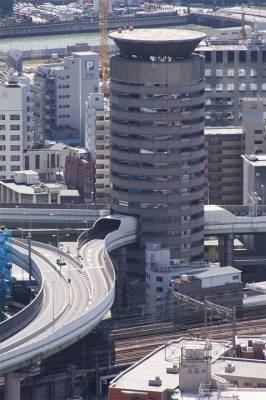 Japonya Osaka'da bulunan 16 katlı "Gate Tower" Binasının en önemli özelliği, 5 ve 7. katları arasından KARAYOLU geçmesi. Binanın asansörü 5-7 arası durmayıp, 4. kattan 8. kata çıkıyor.