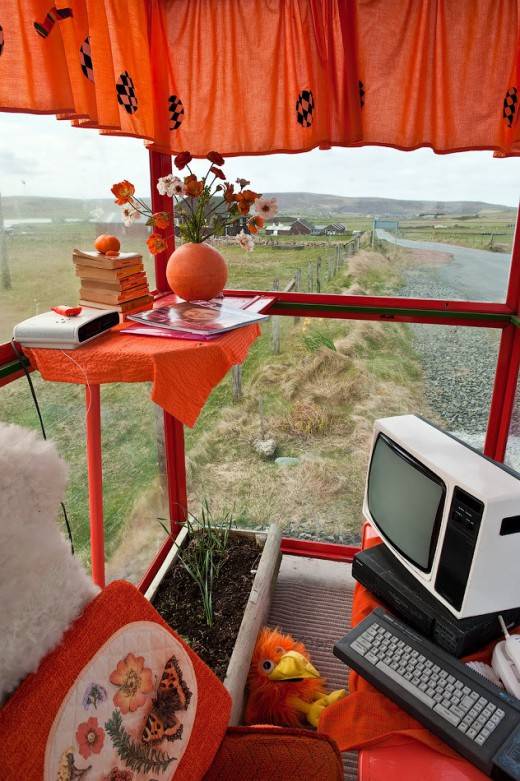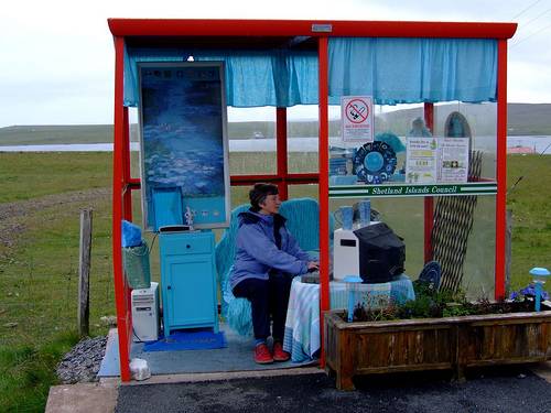 İskoçya'daki Unst adasında bulunan bu otobüs durağı, muhtemelen dünyanın en "lüks" otobüs duraklarından biri :)) İçinde bulunan tüm ekipmanla küçük bir bekleme salonunu andıran durakta ayrıca bir de ziyaretçi defteri bulunuyor.