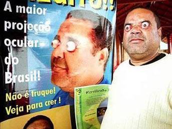 “Gözlerimi bebeklerinden 4 cm dışarıya çıkarabiliyorum. Bu bana tanrının bir hediyesi. Kendimi kutsanmış hissediyorum.” Bu sözler gözlerini, göz bebeklerinin içinde yüzde 95 oranında dışarıya pörtletebilen Brezilyalı Claudio Pinto’ya (42) ait. Hayatını gözlerini pörtleterek kazanan Brezilyalının keyfine diyecek yok çünkü, o yıllarca işsizlik sigortası ile geçinmiş birisi.
