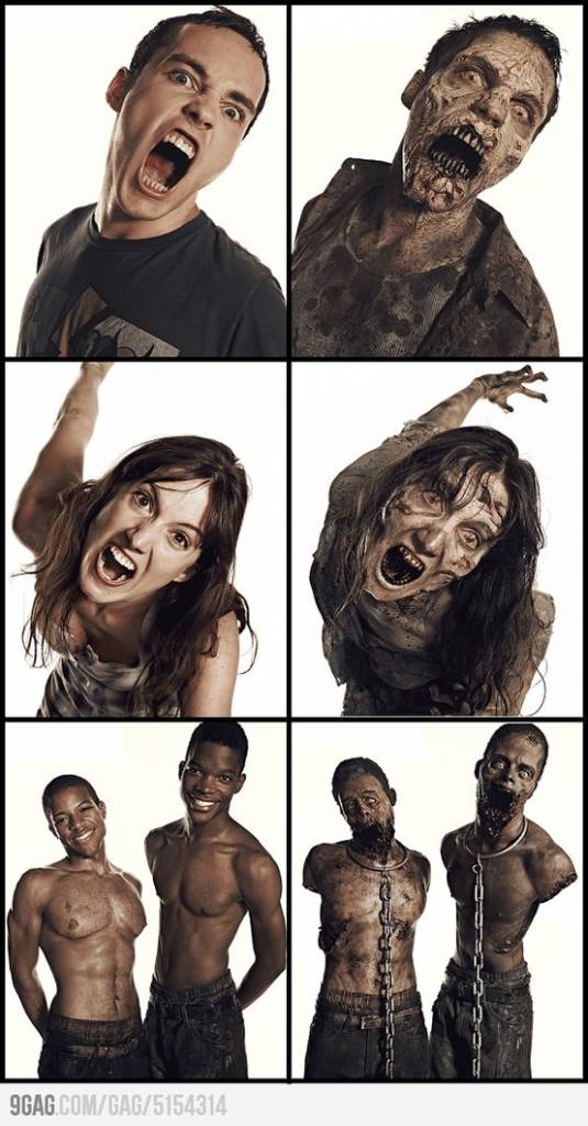 Son zamanların en çok izlenen dizilerinden biri olan ve dünyayı zombilerin basması sonucu hayatta kalan insanların hikayesini anlatan The Walking Dead (Yürüyen Ölüler), öyküsünün yanı sıra zombilerin makyajlarıyla da dikkat çekiyor.