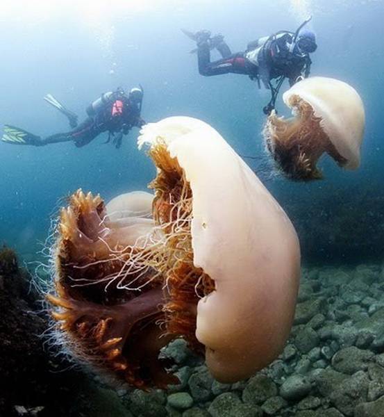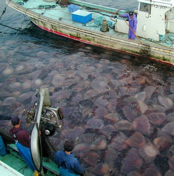 Japonya'da çapı 2 metreyi bulan ve neredeyse 200 kg ağırlığında olan ve kıyılara akın eden dev deniz anaları: