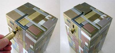 Bu tuğla şeklindeki metal prizma, aslında 125 parçaya bölünmüş gizli bir silah.
