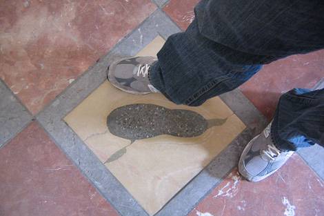 Ayak izi kilisenin hemen girişindeki holde yer alıyor.
