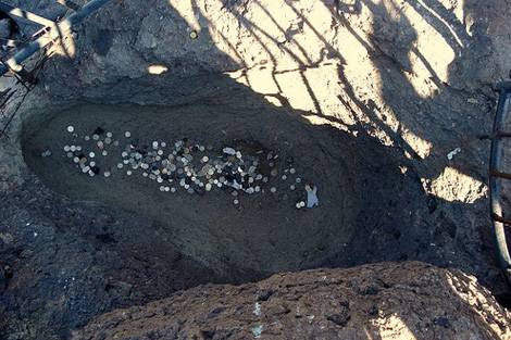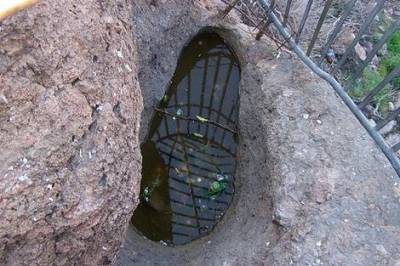 Şeytanın ayak izinin olduğu çukur şu anda demir kafeslerle çevrilmiş, koruma altına alınmıştır.