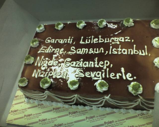 Pastanın üstüne 'garanti leasing' den sevgilerle.' yazılmasi istenmiş.