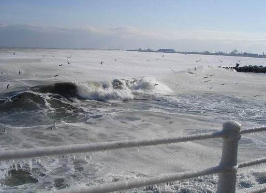 Aşırı soğuk etkisiyle Karadeniz, dalgalı haldeyken buz kesmiş!!!