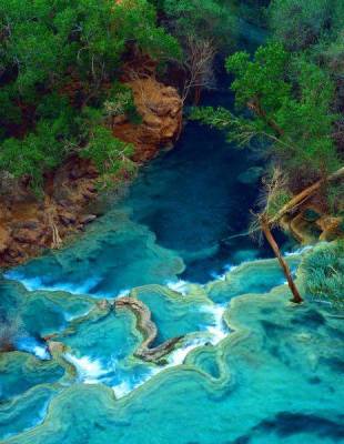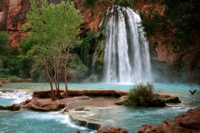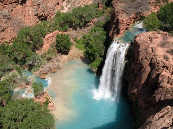 Havasu Şelalesi, ABD'nin Arizona eyaletindeki Büyük Kanyon Ulusal Parkı içinde bulunuyor. Şelalenin döküldüğü yerde turkuaz renginde yüzülebilir havuzcuklar mevcut, ayrıca çevrede kamp da kurulabiliyor. Fakat bu bölgeye yürüme ulaşmak hiç de kolay değil. "Hualapai Hilltop" park alanından 16 km.lik uzun bir yürüyüş yapılması gerekiyor. Bu kadar uzun yürüyüşten hoşlanmayanlar ise, Supai kızılderili köyüne helikopterle gelip, kalan 2-3 km'lik yolu at ile tamamlıyor.