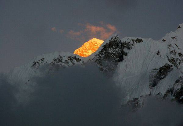 Burası Everest Dağının en yüksek yeri. Fotoğrafı çeken, öyle doğru bir anda yakalamış ki ışığı, resim ilk bakışta aktif bir volkan izlenimi veriyor sanki...