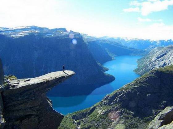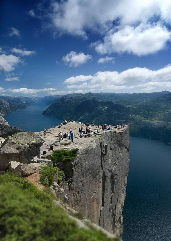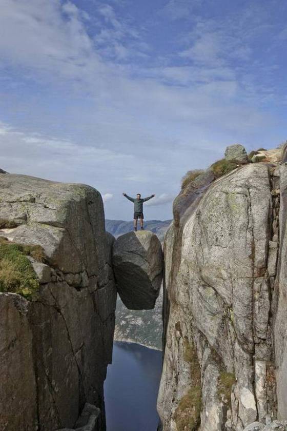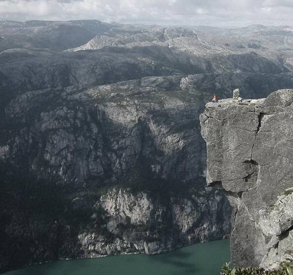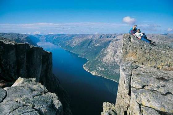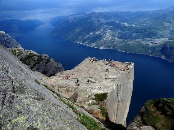 Norveç'in meşhur kayalıkları doğa severlerin Avrupa'da en yoğun ilgi gösterdiği turistik bölgelerden biri... İsteyen uçurum kenarında manzara seyrediyor, cesareti olan da dünyanın en heyecanlı ve tehlikeli sporlarından biri olan "uçurum dalışı" yapıyor...