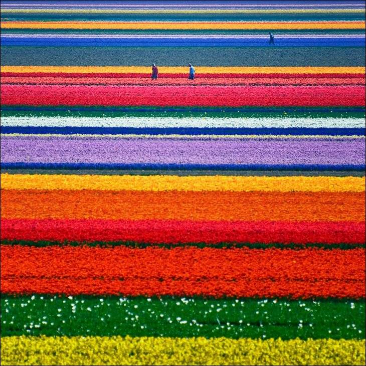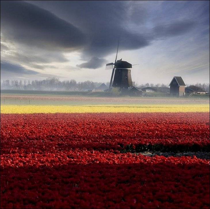Hollanda'da bulunan rengarenk lale bahçeleri görenleri büyülüyor