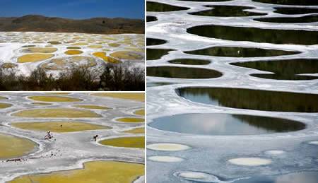 Sıcak yaz havasında Benekli Göl'ün (Spotted Lake) suları buharlaşırken, minerallerin kristalleşemesine ve beyaz halkaların oluşmasına neden oluyor. Dünyanın en üst düzeyde konsantre minerallerine sahip bu yöre toprağı tarih boyunca Kızılderililer tarafından tedavi amaçlı kullanılmış.