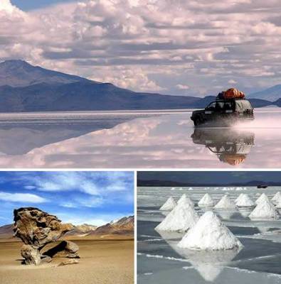 Dünyadaki en ilginç yerlerden biri olan Salar De Uyuni tuz çölleri, aktif volkanlar, kaktüs adaları, gayzer su kaynaklarından oluşuyor. Eşsiz görünümü uzay temalı filmler için doğal bir plato sunuyor.