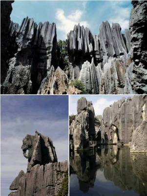 Shilin (Taş Orman'ın Çincesi) karstik oluşumlara mükemmel bir örnek teşkil ediyor. Kireçtaşının suyla aşınmasından oluşan alan Ming Hanedanı zamanından beri biliniyor ve Dünyanın İlk Harikası olarak anılıyor.