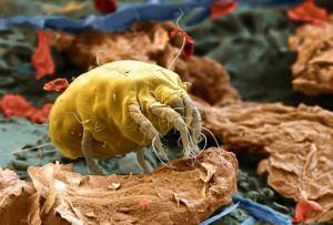 Nemli bölgelerde yaşayan ve astıma sebebiyet veren akarlar, mikroskop aracılığıyla görülebilir.