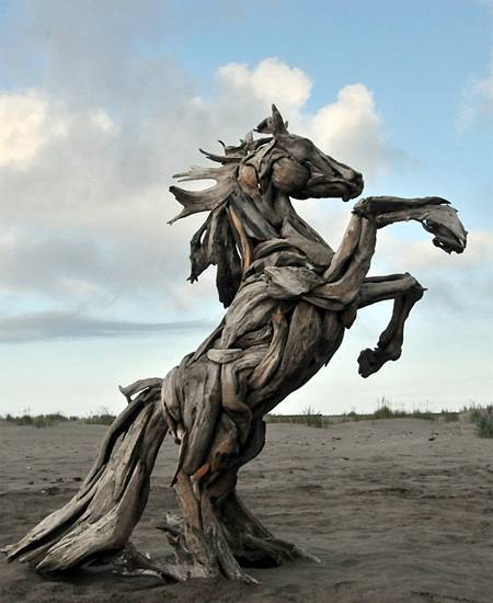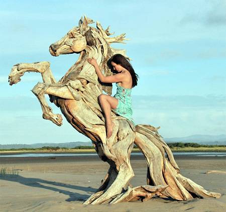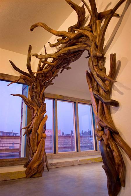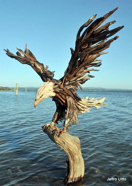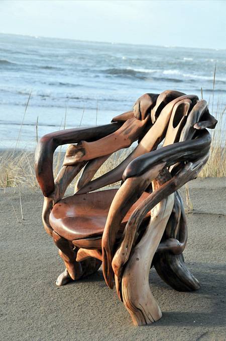 Sanatçı Jeffro Uitto Washington bölgesinde kıyıya vuran ağaç dallarını mobilya ve heykellere dönüştürüyor.