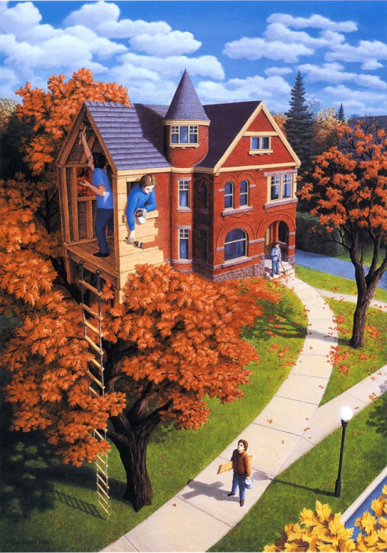 Kanadalı sanatçı Rob Gonsalves yaptığı resimlerle insanın algısıyla oynuyor. Sanatçının çizimlerindeki fark, tek bir resimde kurguladığı farklı hikayelerin arasında belirsiz bir sınır olması.