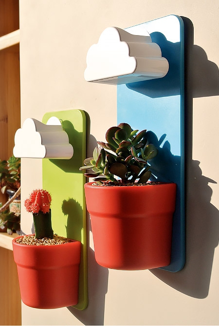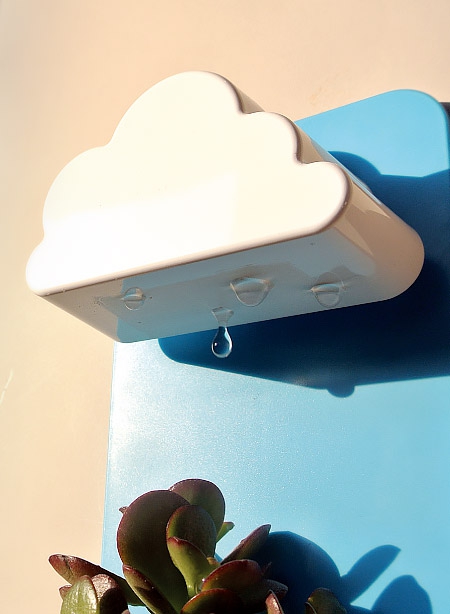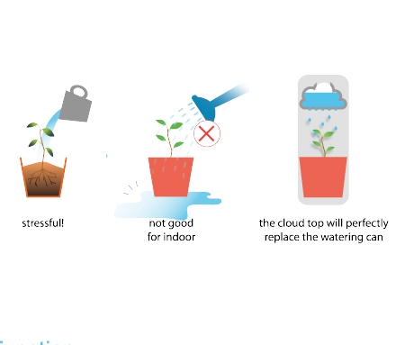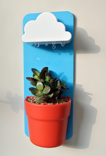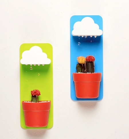 Jeong Seungbin tarafından tasarlanan ve üzerinde kendi bulutu olan minik saksılar, çiçekleri yağmur damlaları ile sulayarak, ev içinde bitkiler için daha doğal bir ortam yaratıyor.