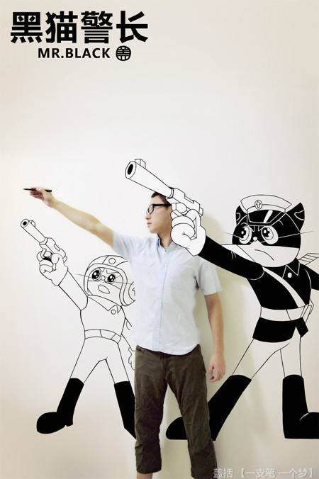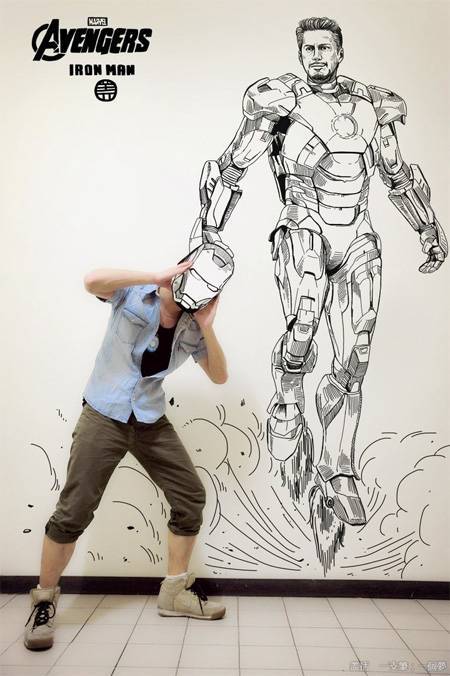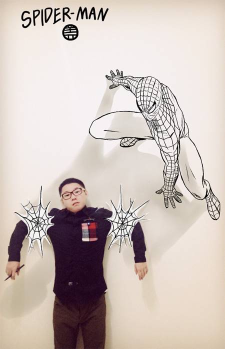 Çinli sanatçı Gaikuo, kendisini beğendiği hayali kahramanlar ve çizgi roman karakterleriyle aynı karede birleştiriyor.