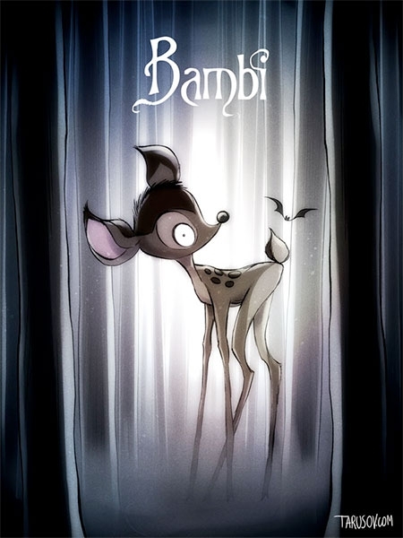 Rus sanatçı Andrew Tarusov, Disney filmleri ünlü yönetmen Tim Burton'un elinden çıksaydı nasıl olurdu diye düşünmüş ve ortaya birbirinden güzel gotik çizimler çıkarmış...