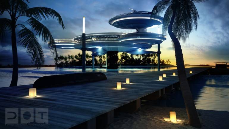 Konuklarına suyun altında uyuma, dinlenme ve eğlenme imkanı sunacak otel, suyun altında ve üstünde olmak üzere disklerden oluşacak.