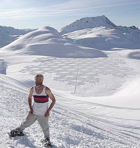 İngiliz sanatçı Simon Beck kar üzerinde yürürken ardında bir sanat eseri bırakıyor.