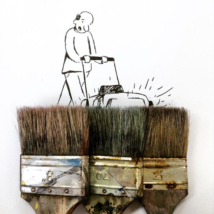 Yaratıcı fikirlerin hayatın her detayında olduğunu söyleyen Praglı sanatçı, sıradan objeleri eğlenceli çizimlere dönüştürüyor.