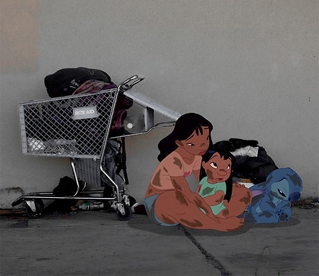 New York'lu sanatçı Jeff Hong Disney karakterlerini kullanarak, masalların mutlu sonuna karşılık hayatın acı gerçeklerini gözler önüne seriyor ve 101 Dalmaçyalı'nın kafese kapatıldığı, Robin Hood'un eylemde yakalandığı, sevimli aşçı fare Ratatouille'ın kobay olarak kullanıldığı bir dünya yaratıyor.
