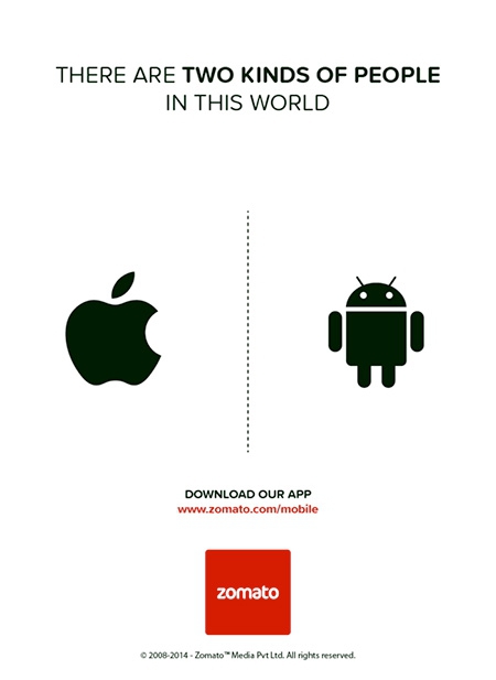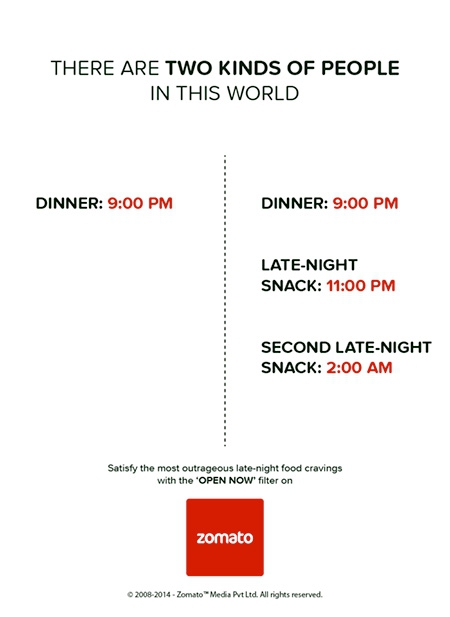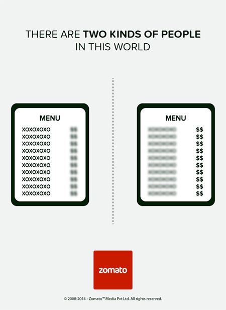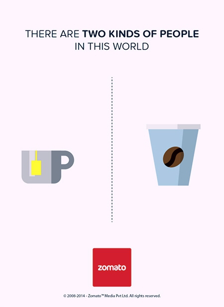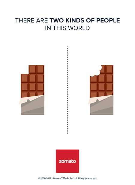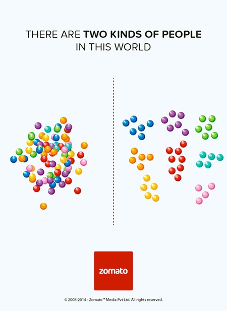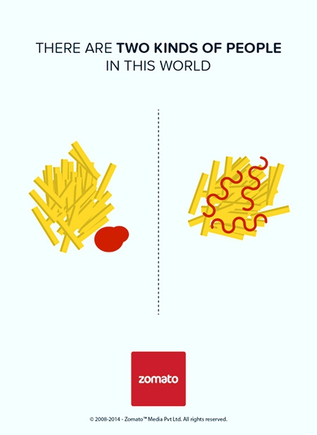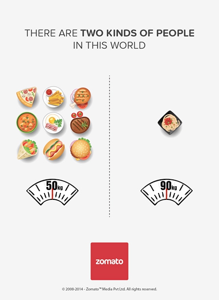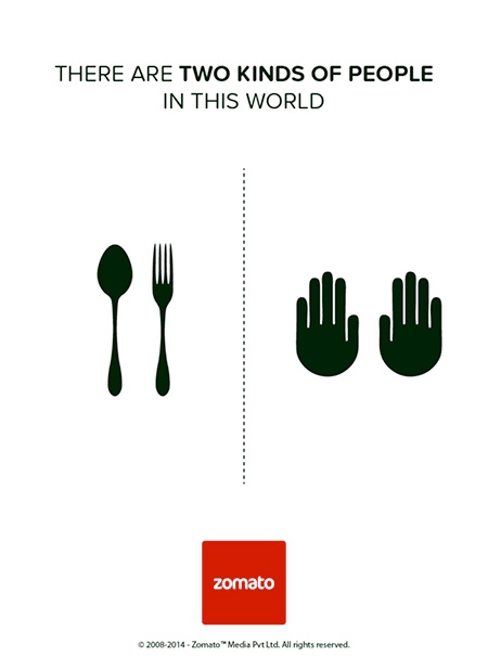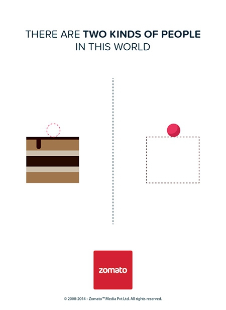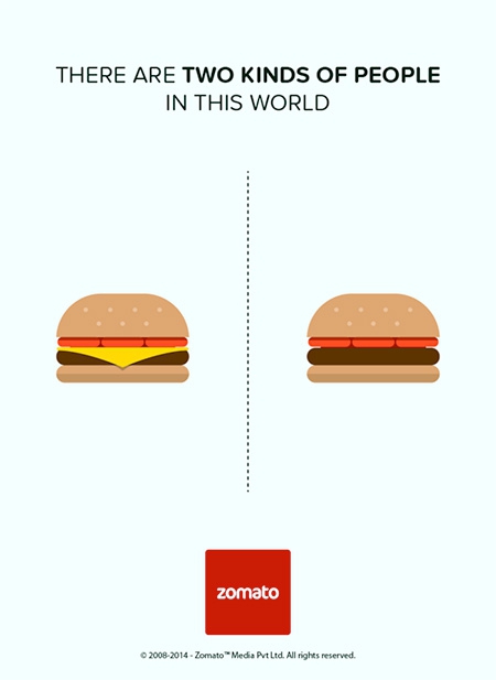 Restoran rehberi olarak faaliyet gösteren bir firma, insanların tüketim alışkanlıklarından yola çıkarak genel olarak iki tip insan olduğuna kanaat getirmiş ve bunları anlatan eğlenceli illüstrasyonlar hazırlamış.