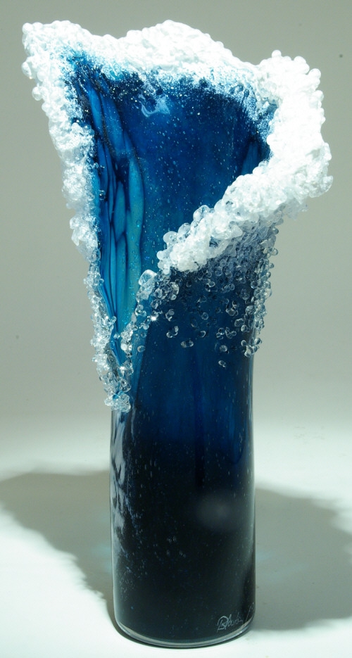 İki cam sanatçısı Marsha Blaker ve Paul DeSomma, okyanusun gücü ve hareketinden esinlenerek eşsiz vazolar tasarladı.