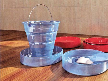 Evlerde kova, çamaşır sepeti ve leğenler epey işe yararlar, ama çok yer kapladıkları için bir o kadar da sorun olurlar. Mine Karahisarlı'nın tasarladığı katlanabilir kova, küçük banyolar için pratik bir çözüm olmuş. Kapağını açıp çektiğinizde kova oluşuyor. Ayrıca kapağın altında temizlik bezlerini de saklayabilirsiniz.