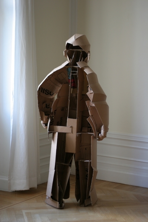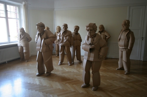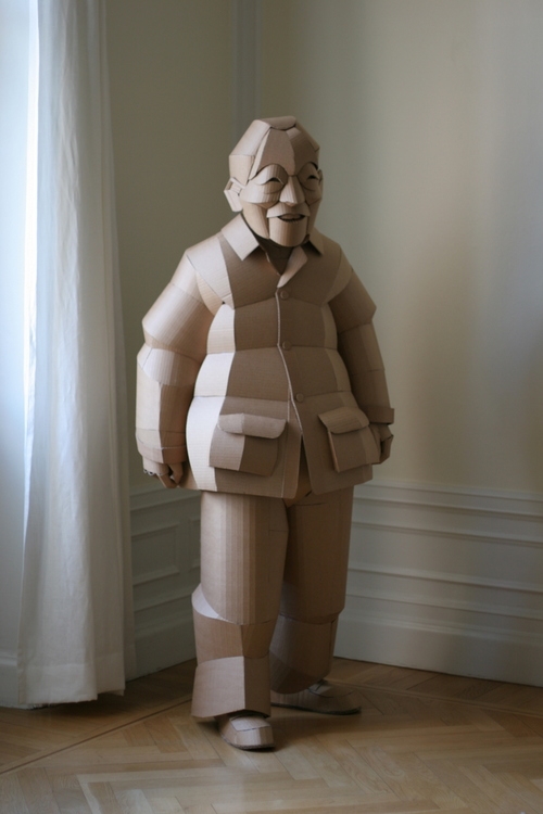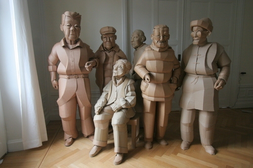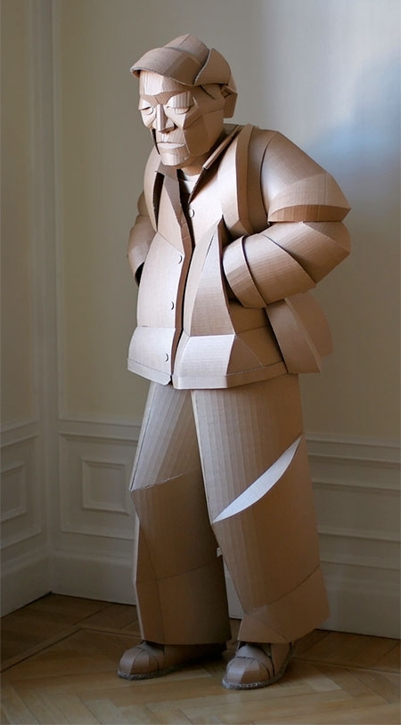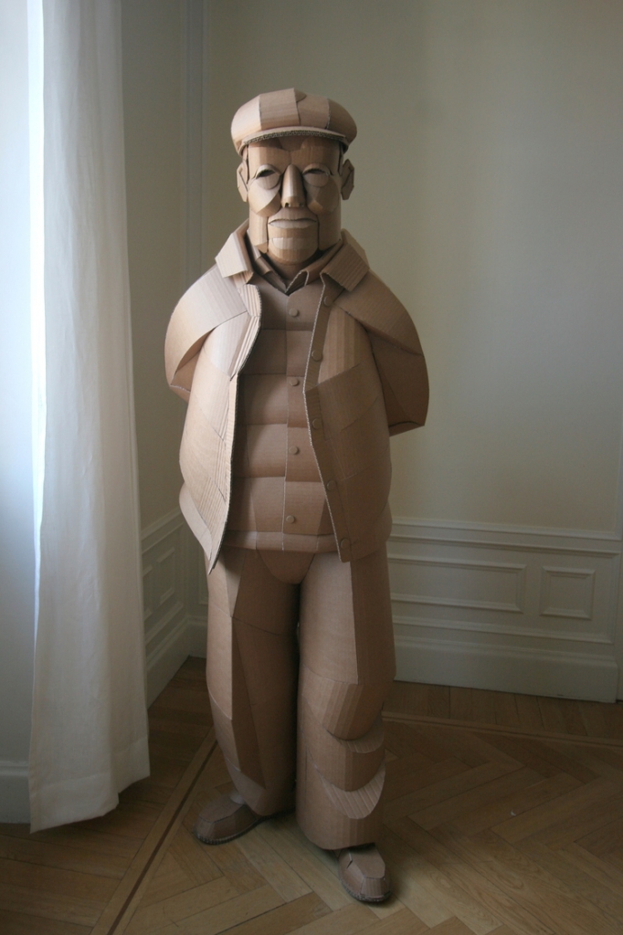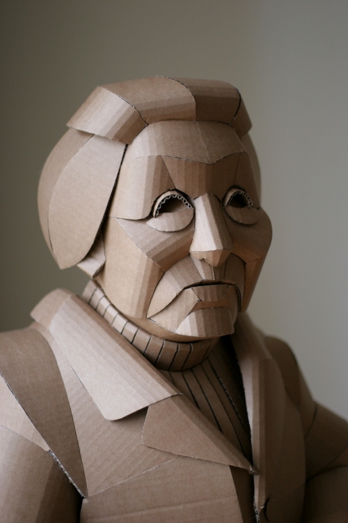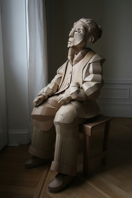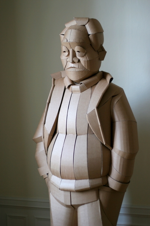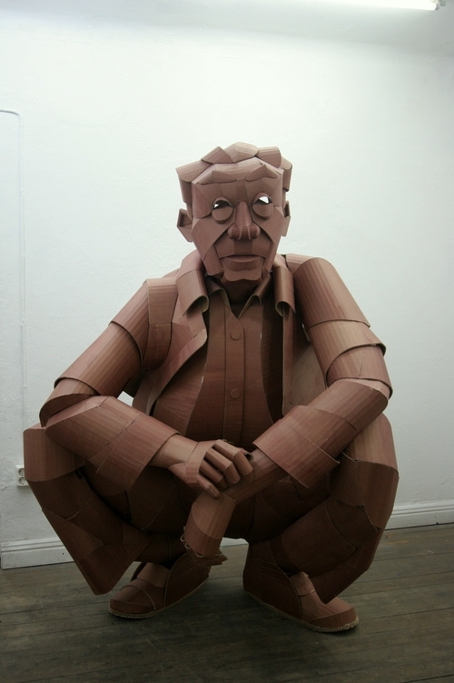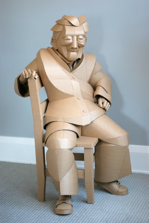 Çalışmasında sadece karton kutu ve yapıştırıcı kullanan ve her bir heykeli gerçek boyutuna uygun şekilde yapan King, ilginç bir iş ortaya çıkarır.