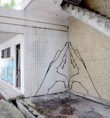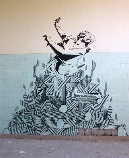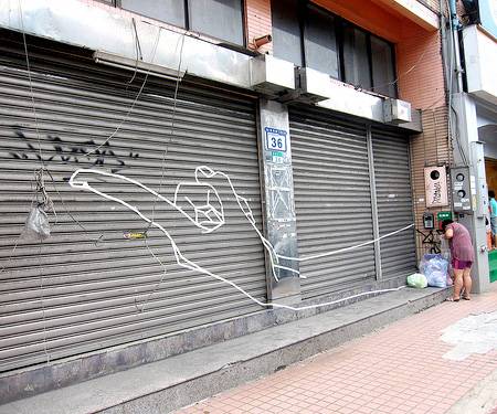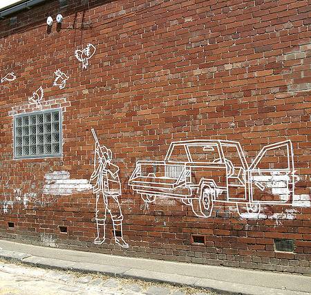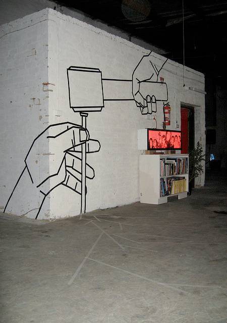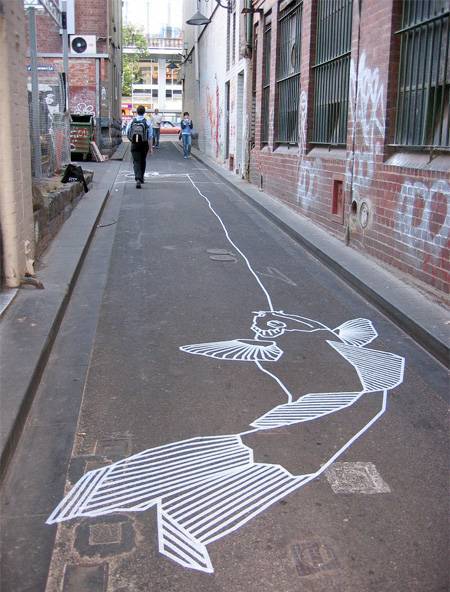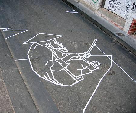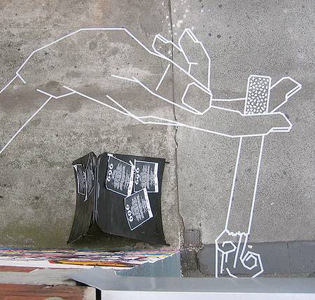 Avustralyalı sokak sanatçısı Buff Diss maskeleme bantları ile değişik bir çalışmaya imza atmış.