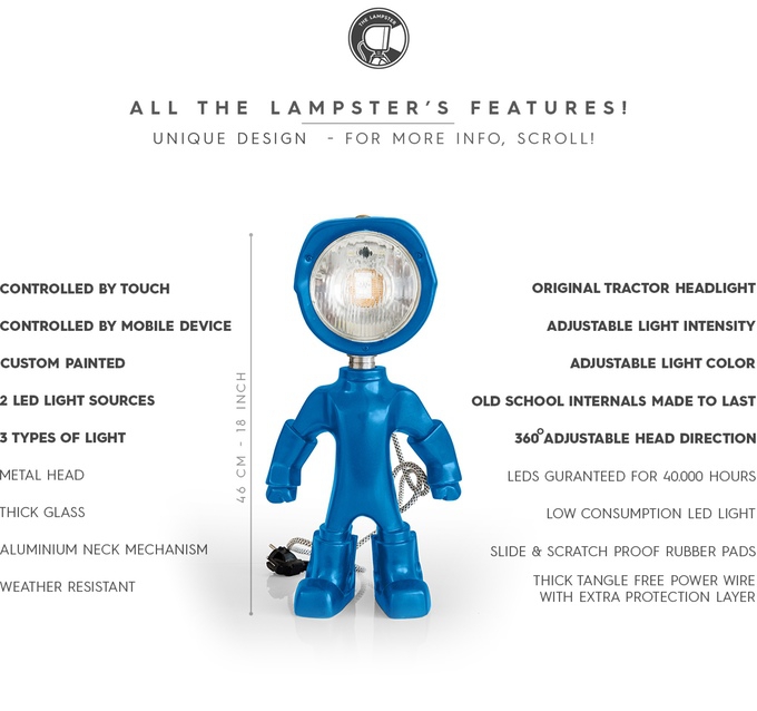 Gövdesini de süper kahraman görünümlü bir robot olarak tasarlayan ekip, ürünlerinin adına ise Lampster ismini verdi.
