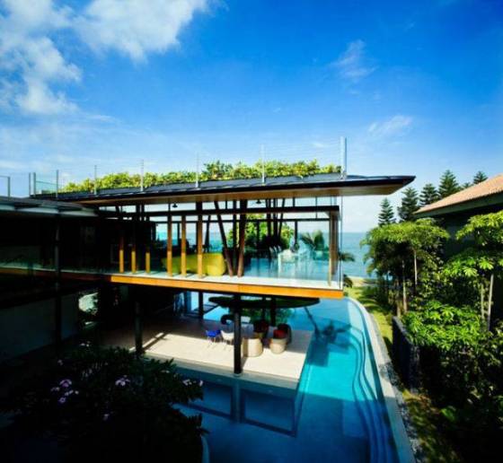 "Guz Architects" tarafından tasarlanan ve Singapur'da bulunan "Fish House"un ana fikri evin içindeyken bile doğayı ve manzarayı hissedebilmek...