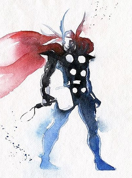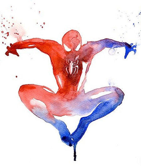 Filmler ve çizgi romanlardan görmeye alışkın olduğumuz süper kahramnaların suluboya ile yapılmış çizimleri.