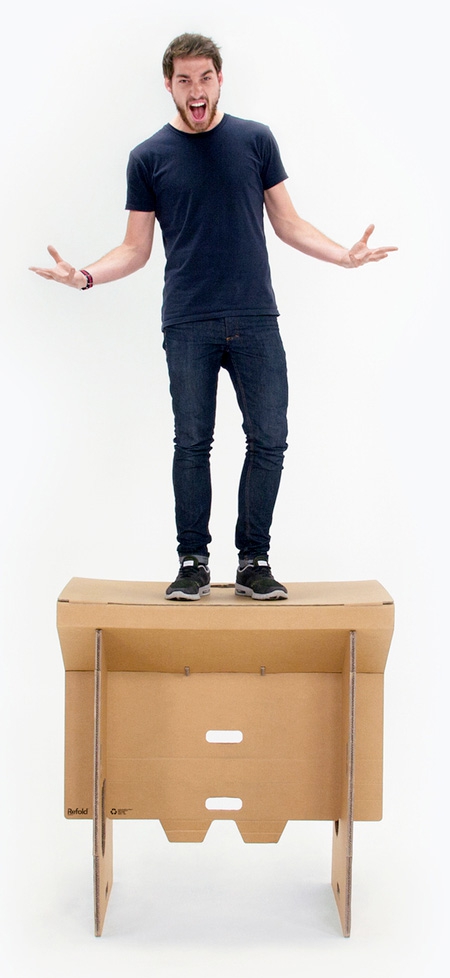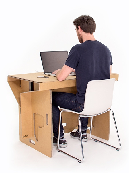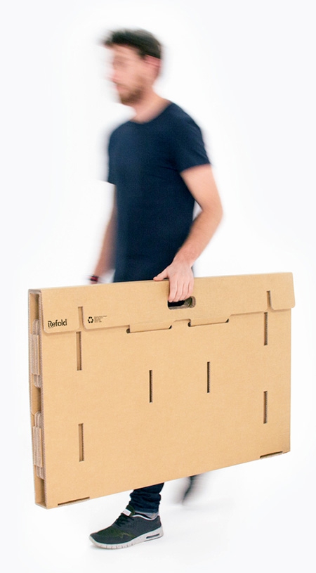 Çevre dostu Refold masa hafif, dayanıklı ve %100 geri dönüştürülebilir. Karton masayı katlayıp taşınabilir hale getirmek 2 dakikadan az bir zaman alıyor.