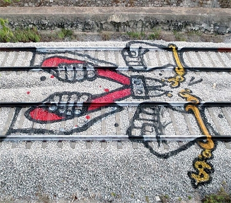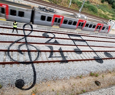 Sokak sanatçısı Artur Bordalo tren raylarını yaratıcı çizimlerle renklendiriyor.