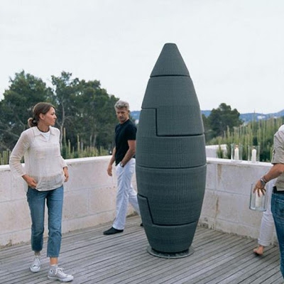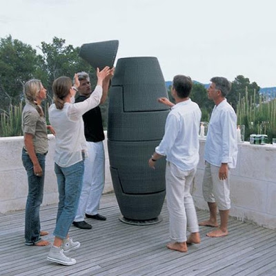 Kapalıyken roket şeklinde bir anıta benzeyen bu ilginç obje, aslında 4 kişilik bir oturma grubuna dönüşüyor. Hem iç hem dış mekanda kullanabileceğiniz bu yaratıcı tasarım, toplandığında yer kaplamaması bakımından da oldukça işlevsel...